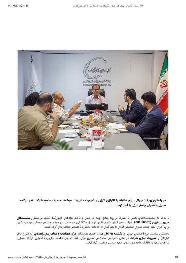 برگزاری جلسه آغاز بکار ممیزی جامع انرژی در فجر انرژی خلیج فارس